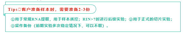 因為空間轉錄組測序是對組織切片進行操作,需要將組織進行切片。因此客戶在制備樣本時,需要將新鮮的組織凍存并進行OCT包埋。 后續(xù)的冷凍切片、RNA 捕獲及文庫構建等操作可以視具體情況帶回公司進行實驗。