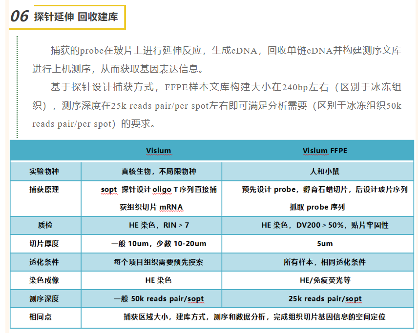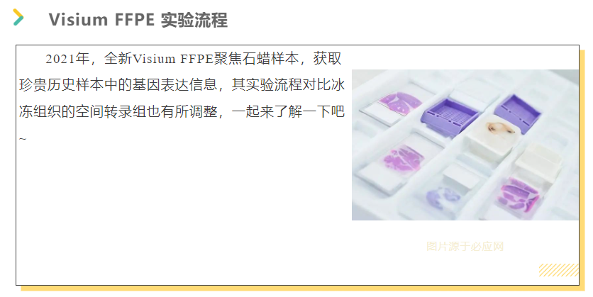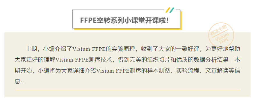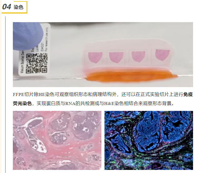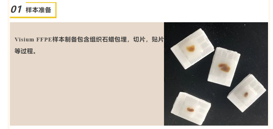FFPE樣本切片厚度一般為5μm(區(qū)別于冰凍組織樣本的10μm),切片樣本大小不宜超過6.5mm × 6.5mm(載玻片的大?。?,超出的部分無法被捕獲到,反而可能會影響其他樣本空間信息。