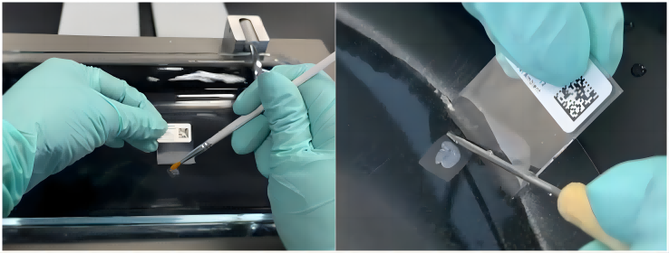 另外,對每個FFPE樣本,都需要做FFPE貼片粘附性實驗。通過切片脫蠟染色再復水,顯微成像觀察脫片情況,保證正式實驗樣本切片能牢固的粘附在玻片上,防止后續(xù)實驗過程中加各種試劑或洗滌浸水導致切片脫落。