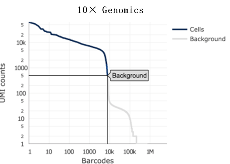 由于細(xì)胞破碎后游離RNA會釋放到環(huán)境或微孔中,并且測序中也會存在一些死細(xì)胞,導(dǎo)致數(shù)據(jù)存在background值。因此,我們需要設(shè)定一定的標(biāo)準(zhǔn)來過濾掉假細(xì)胞或死細(xì)胞。