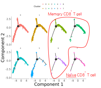 (2)CD8+ T細(xì)胞所處分化時(shí)間軌跡