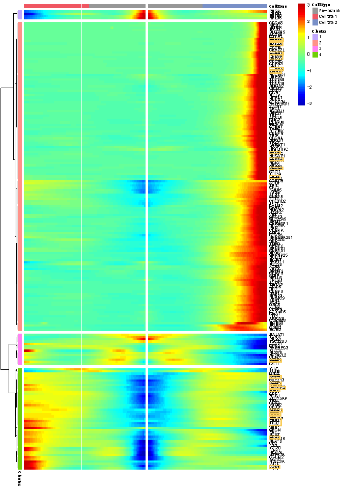 圖4 擬時(shí)序Beam分析基因表達(dá)熱圖