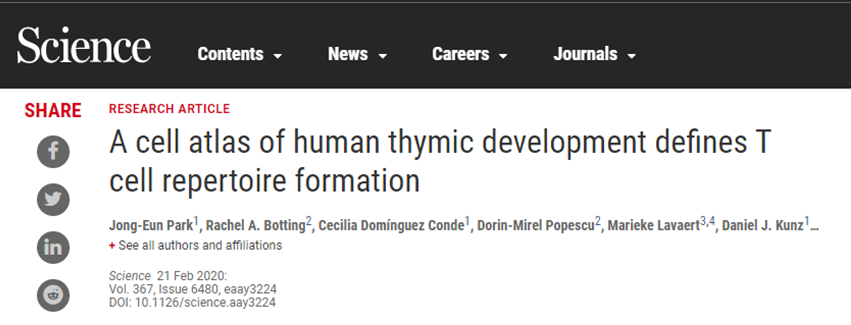 題目:A cell atlas of human thymic development defines T cell repertoire formation