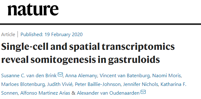 題目:Single-cell and spatial transcriptomics reveal somitogenesis in gastruloids