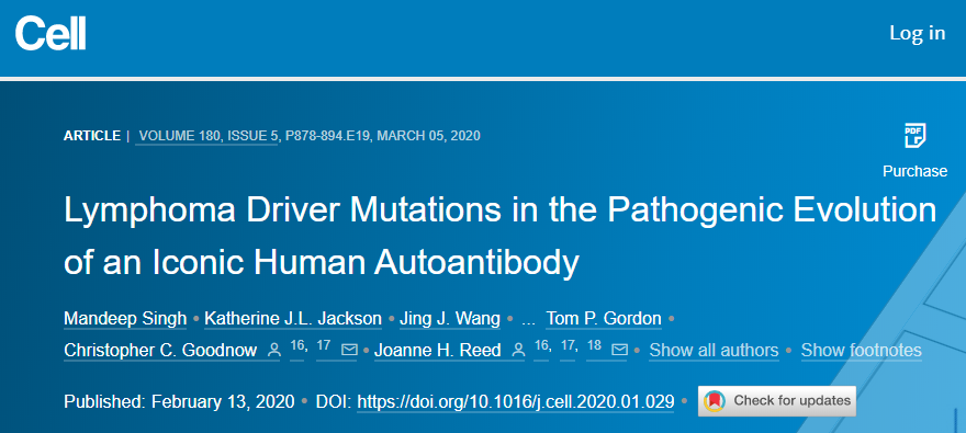題目:Lymphoma Driver Mutations in the Pathogenic Evolution of an Iconic Human Autoantibody