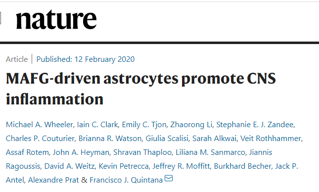 題目:MAFG-driven astrocytes promote CNS inflammation