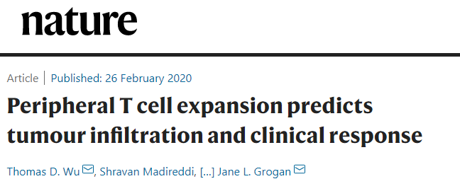 題目:Peripheral T cell expansion predicts tumour infiltration and clinical response