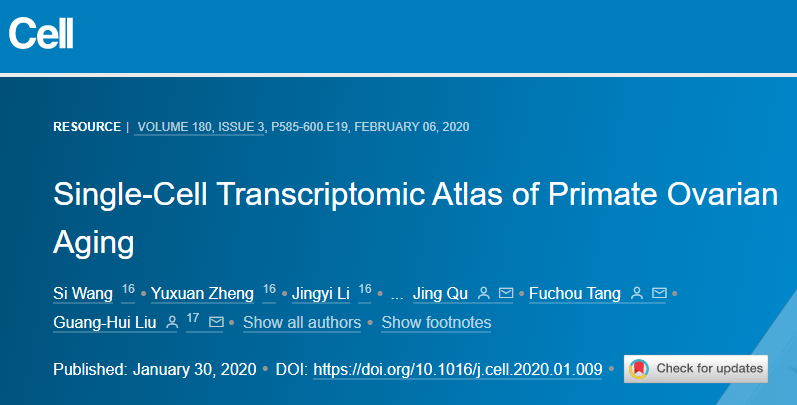 題目:Single-Cell Transcriptomic Atlas of Primate Ovarian Aging