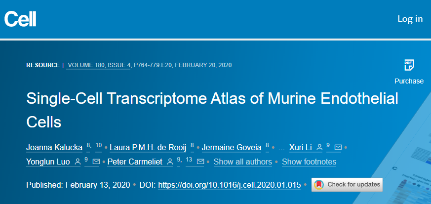 題目:Single-Cell Transcriptome Atlas of Murine Endothelial Cells