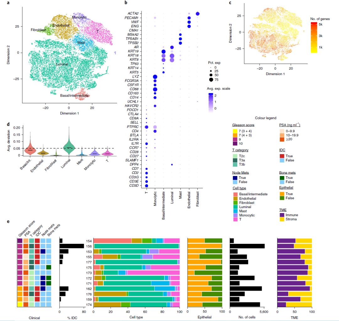 文章通過單細(xì)胞轉(zhuǎn)錄組測(cè)序技術(shù),解析了前列腺癌腫瘤微環(huán)境的高度異質(zhì)性,發(fā)現(xiàn)了臨床病理和影像學(xué)無法識(shí)別的微轉(zhuǎn)移灶,還揭示了癌細(xì)胞通過外泌體的方式馴化免疫細(xì)胞轉(zhuǎn)錄組使其表達(dá)腫瘤基因,這些都對(duì)前列腺癌治療靶點(diǎn)的確定和侵襲性腫瘤生物標(biāo)志物的研發(fā)開拓了思路。