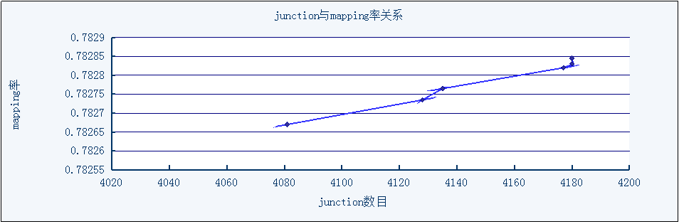 通過(guò)測(cè)試數(shù)據(jù)可以知道對(duì)于Illumina測(cè)序平臺(tái)數(shù)據(jù)而言,junction數(shù)目與mapping率基本成正比關(guān)系。