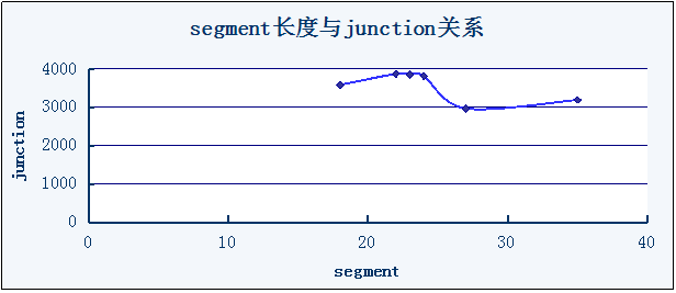 通過(guò)測(cè)試數(shù)據(jù)可以知道對(duì)于ionproton測(cè)序平臺(tái)數(shù)據(jù)而言,在segment-length小于36時(shí),可以發(fā)現(xiàn)隨著segment-length長(zhǎng)度變長(zhǎng),junction數(shù)目升高。而在36以后這個(gè)數(shù)字下降,但是總體比30以內(nèi)長(zhǎng)度的大。