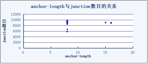 通過(guò)測(cè)試,統(tǒng)計(jì)出anchor-length長(zhǎng)度對(duì)于junction數(shù)目關(guān)系如下圖所示: