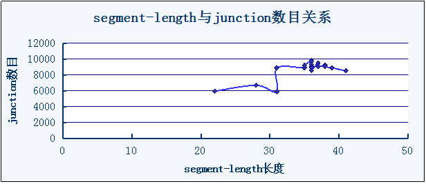 3.我們發(fā)現(xiàn)segment-length參數(shù)對(duì)于junction數(shù)目變化有很大影響,其中,當(dāng)segment-length為36時(shí),相比默認(rèn)參數(shù)6074junction數(shù)目而言,此時(shí)的junction數(shù)目為9368.總體而言,提升效果是顯著的。