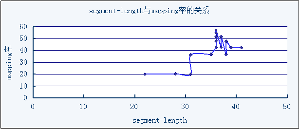 通過(guò)測(cè)試數(shù)據(jù)可以知道對(duì)于ionproton測(cè)序平臺(tái)數(shù)據(jù)而言,在segment-length小于36時(shí),可以發(fā)現(xiàn)隨著segment-length長(zhǎng)度變長(zhǎng),mapping總體目升高。而在36以后這個(gè)數(shù)字有下降的情況,但是總體比30以內(nèi)長(zhǎng)度的大。