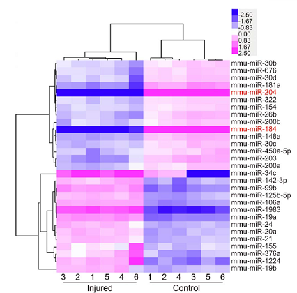 注:橫軸表示組別,縱軸表示不同miRNAs。
