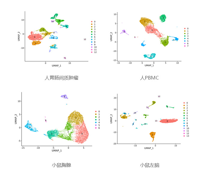 已經(jīng)測試的部分組織-細胞聚類分析UMAP圖: