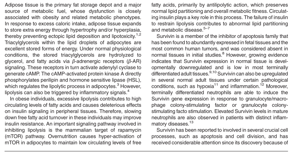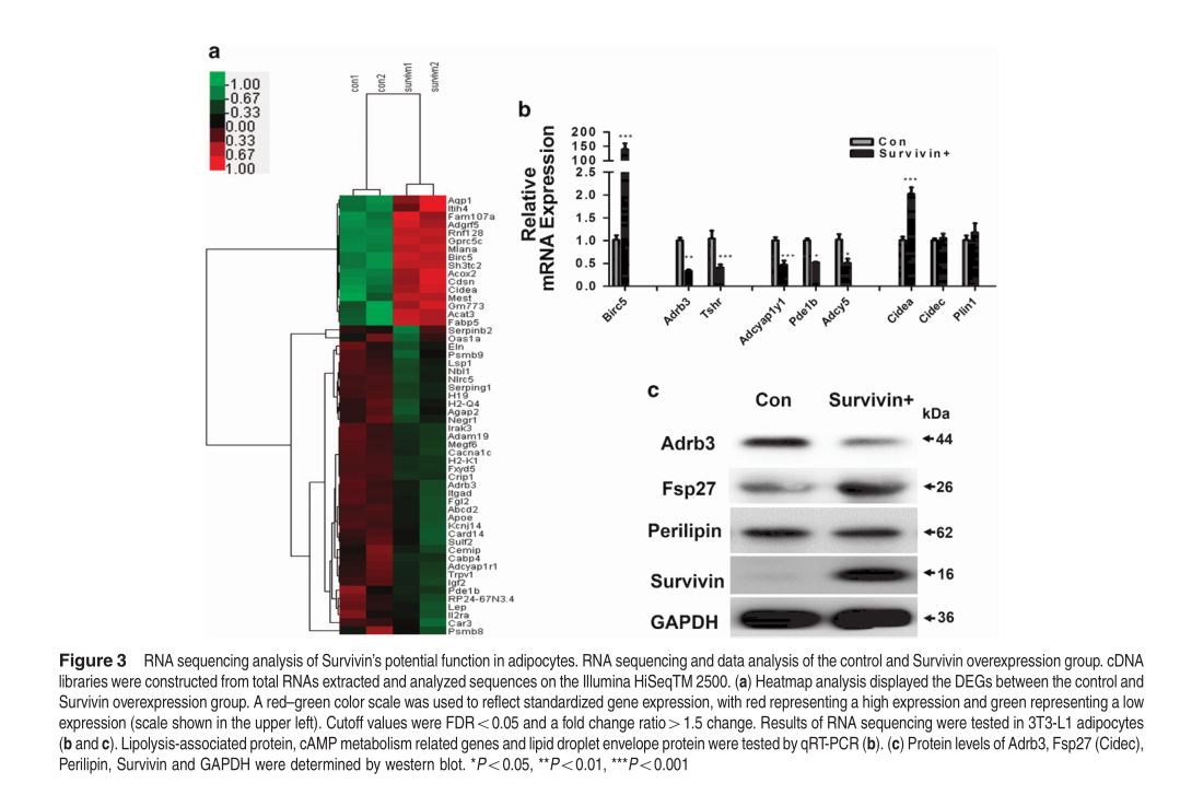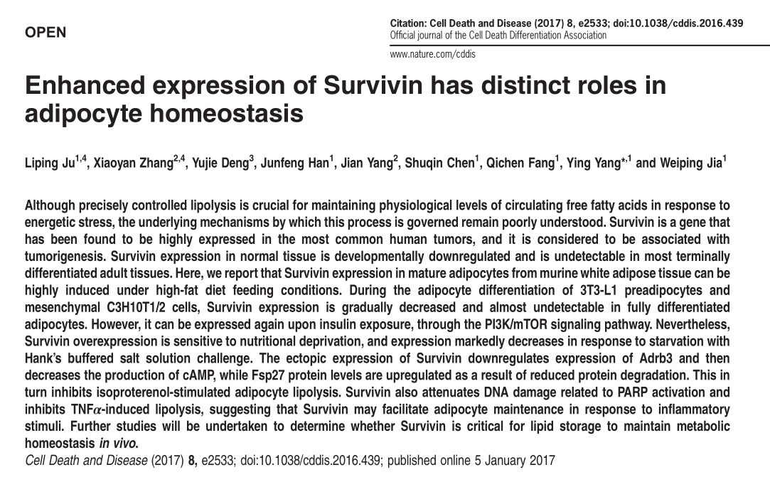 Ju L, et al. Enhanced expression of Survivin has distinct roles in adipocyte homeostasis. Cell Death Dis.?2017 Jan 5;8(1):e2533.(IF=5.965)
