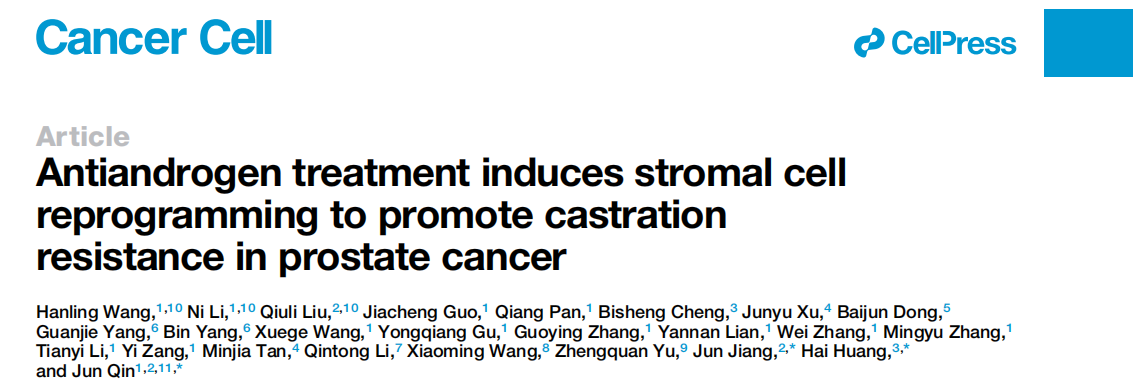 烈冰生物合作伙伴中國科學(xué)院上海營養(yǎng)與健康研究所秦駿課題組聯(lián)合中山大學(xué)孫逸仙紀(jì)念醫(yī)院黃海以及中國人民解放軍陸軍特色醫(yī)學(xué)中心大坪醫(yī)院江軍團(tuán)隊(duì)針對上述問題開展了系列研究,于近期在 Cancer Cell期刊發(fā)表了題為:Antiandrogen treatment induces stromal cell reprogramming to promote castration resistance in prostate cancer 的研究論文。烈冰生物參與了本研究中的單細(xì)胞測序和數(shù)據(jù)分析工作,下面我們一起了解一下本文的研究思路和結(jié)果解析部分~