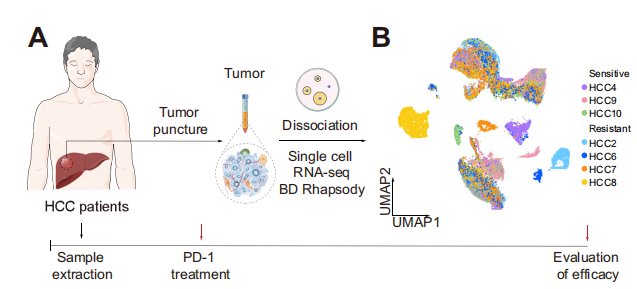 樣本:抗PD-1治療響應(yīng)的HCC患者(n=3),抗PD-1治療耐藥的HCC患者(n=4)