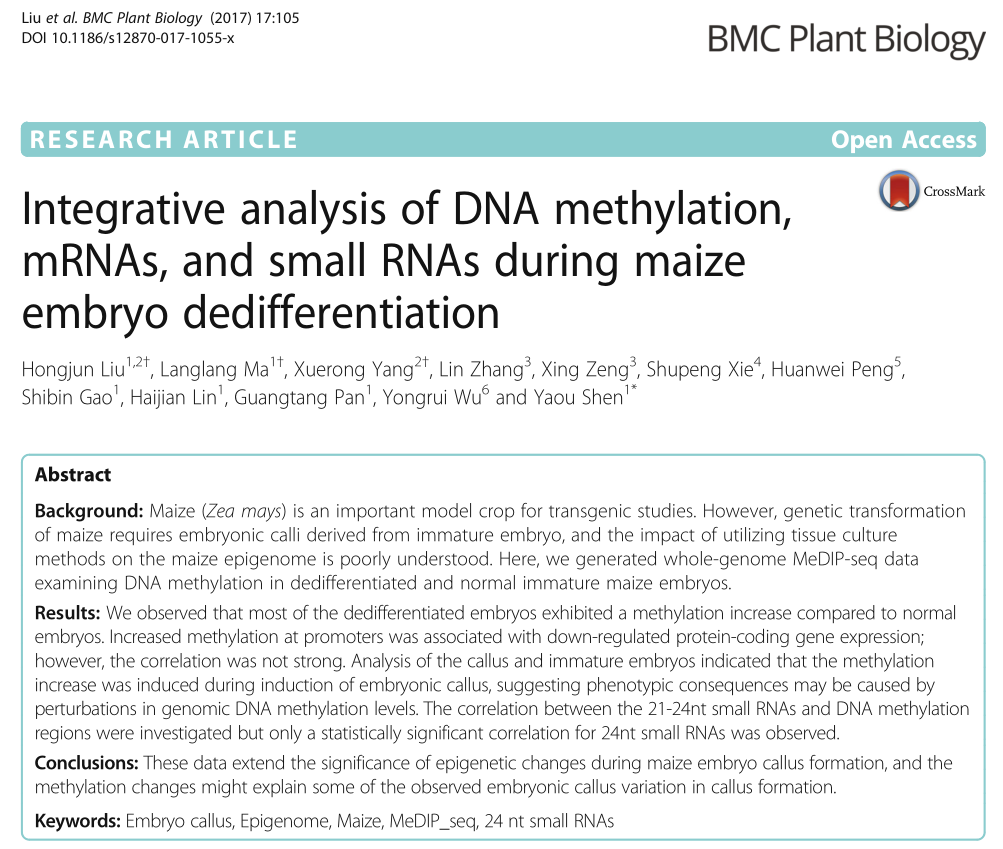 Yan Q, et al. Depletion of Arabidopsis SC35 and SC35-like serine/arginine-rich proteins affects the transcription and splicing of a subset of genes. PLoS Genet.?2017 Mar 8;13(3):e1006663. (IF=6.1)