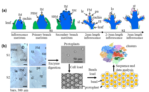 烈冰生物CTO宗杰博士和王麗、朱璐博士為共同第一作者,上交大袁政教授為本文章通訊作者,張大兵教授,梁婉琪教授等參與了本項研究的實施。該文發(fā)表于植物權威期刊《New Phytologist》(IF=10.15),題目為A rice single cell transcriptomic atlas defines the developmental trajectories of rice floret and inflorescence meristems,該研究首次揭示了水稻花序早期發(fā)育單細胞動態(tài)全景圖。