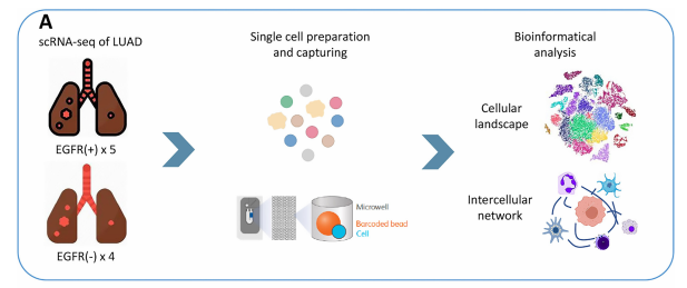 既往研究發(fā)現(xiàn),EGFR突變型肺腺癌(EGFR-LUAD)的PD-L1表達和腫瘤突變負荷(TMB)都較低,免疫治療療效不佳。而針對該疾病的免疫微環(huán)境(TME)尚不清楚,這都為EGFR-LUAD的治療增加了難度。