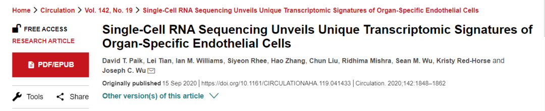 論著題目:Single-cell RNA-seq Unveils Unique Transcriptomic Signatures of Organ-Specific Endothelial Cells