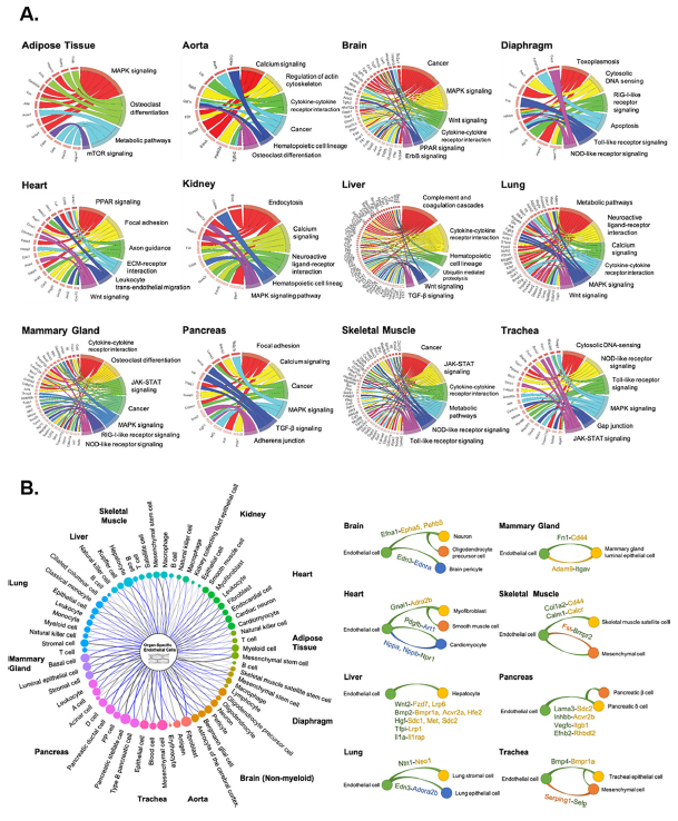 針對此問題,來自斯坦福心血管研究所的David T. Paik團(tuán)隊?wèi)?yīng)用單細(xì)胞測序實驗數(shù)據(jù),對來自12種主要組織和器官的內(nèi)皮細(xì)胞進(jìn)行剖析,揭示了組織特異性ECs和其他細(xì)胞類型之間潛在的血管分泌相互作用。