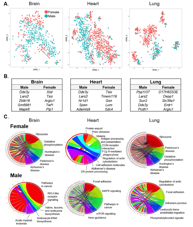 有趣的是,基因Lars2的表達(dá)是雄性小鼠內(nèi)皮細(xì)胞所特有的。這些發(fā)現(xiàn)表明,在某些組織中存在著具有性別特異性的ECs子集,性別可能是組織特異性ECs轉(zhuǎn)錄組變異的一個重要來源。