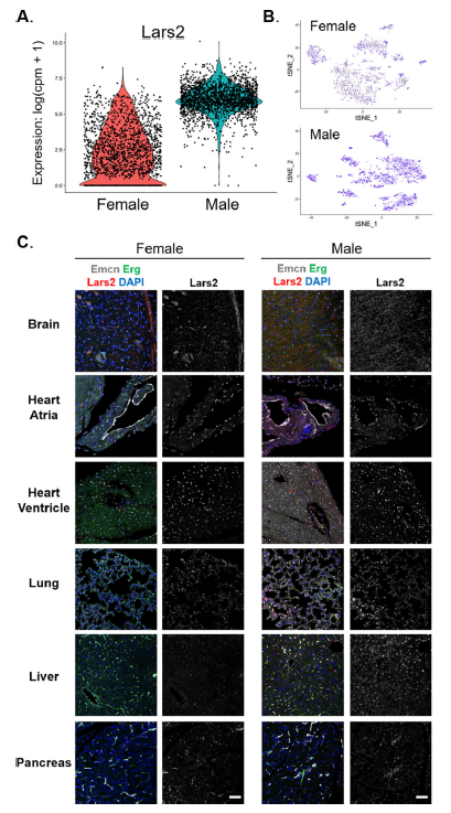 圖6. Lars2的表達(dá)是男性內(nèi)皮細(xì)胞所特有的