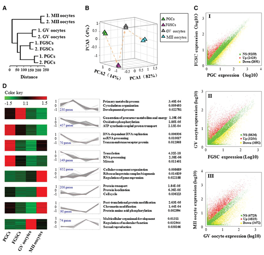 1.分別對PGC,F(xiàn)GSC,GV和MII卵母細(xì)胞進(jìn)行微量細(xì)胞的RNA-seq,獲得表達(dá)譜數(shù)據(jù);