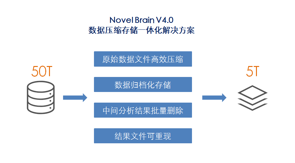 隨著二代測序數(shù)據(jù)量的上升,數(shù)據(jù)壓縮刻不容緩。以公有云為例,傳統(tǒng)壓縮和計算的費用比約為7:1-8:1,也就是說每1萬的計算費用需要7-8萬的數(shù)據(jù)存儲費用。目前對于數(shù)據(jù)壓縮有很多方法,如對fastq進(jìn)行壓縮,使用磁帶機或公有云進(jìn)行冷備等。NovelBrain認(rèn)為數(shù)據(jù)壓縮存儲是一個系統(tǒng)化工程,需要多個方案協(xié)同配合才能獲得最佳的存儲效果。