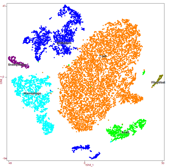 現(xiàn)在這些統(tǒng)統(tǒng)都不是問題??!小編幫你輕輕松松解決?。o需復(fù)雜的PS操作,輕松一鍵得到滿意的細(xì)胞類型鑒定t-SNE圖(圖1右),留下大把的時(shí)間去挖掘深層次的生物學(xué)意義?。?! [i1]
