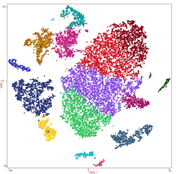 2) 判斷好細(xì)胞類型后,可以通過修改Cluster的顏色和名稱,從而得到配色滿意、類型確定的t-SNE圖。