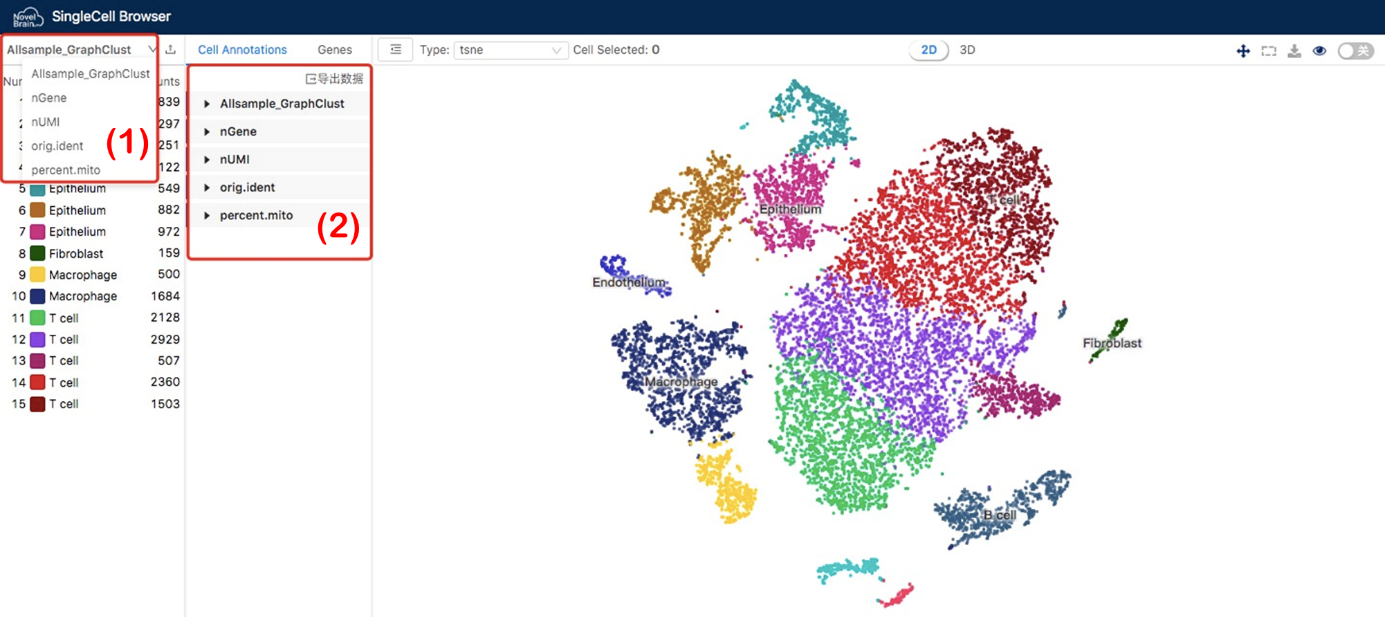 小編將從Cluster相關(guān)信息、細(xì)胞類型的鑒定、基因表達(dá)情況、分析結(jié)果的2D/3D圖像轉(zhuǎn)換四個(gè)角度對單細(xì)胞瀏覽器的主要功能進(jìn)行簡單文字說明和操作演示。(文末配有單細(xì)胞瀏覽器的整體視頻~)