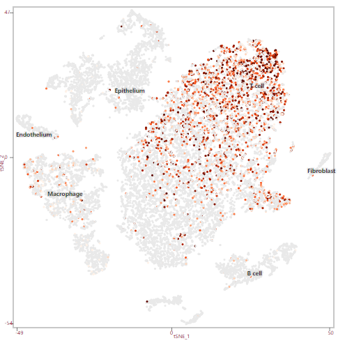 單細(xì)胞瀏覽器生成的t-SNE圖、Heatmap、Violin圖均可達(dá)到文章發(fā)表的要求;界面簡潔明了,一鍵搜索關(guān)注基因節(jié)省了大量的時(shí)間;3D立體化展示,方便更加直觀深入的觀察。