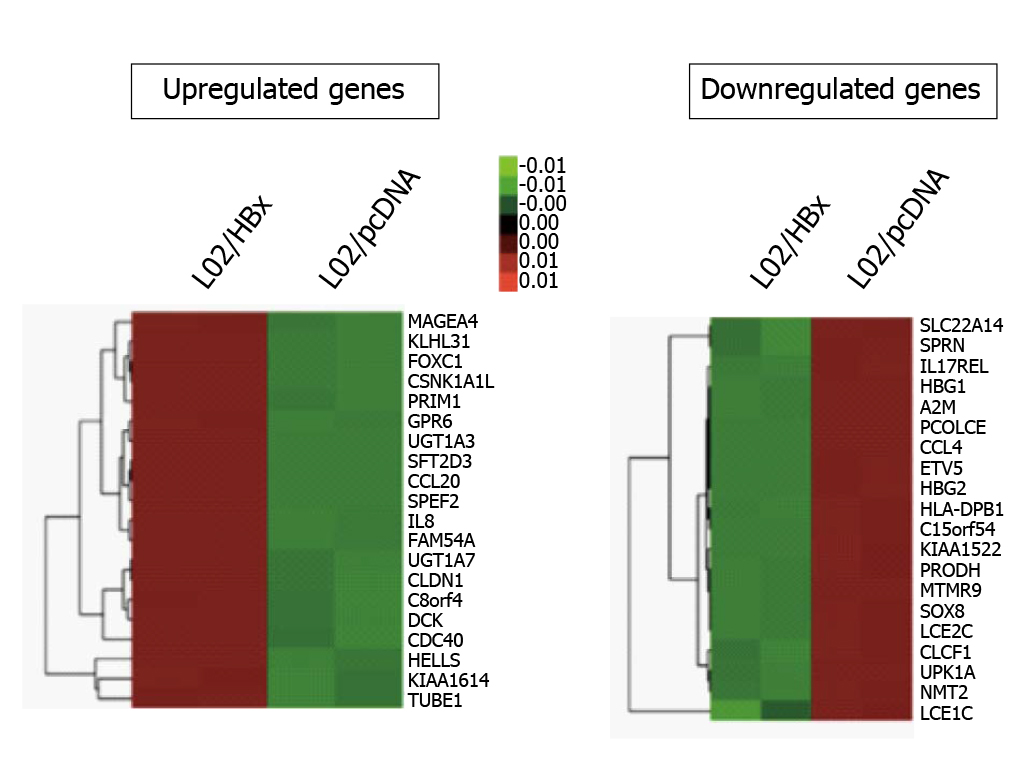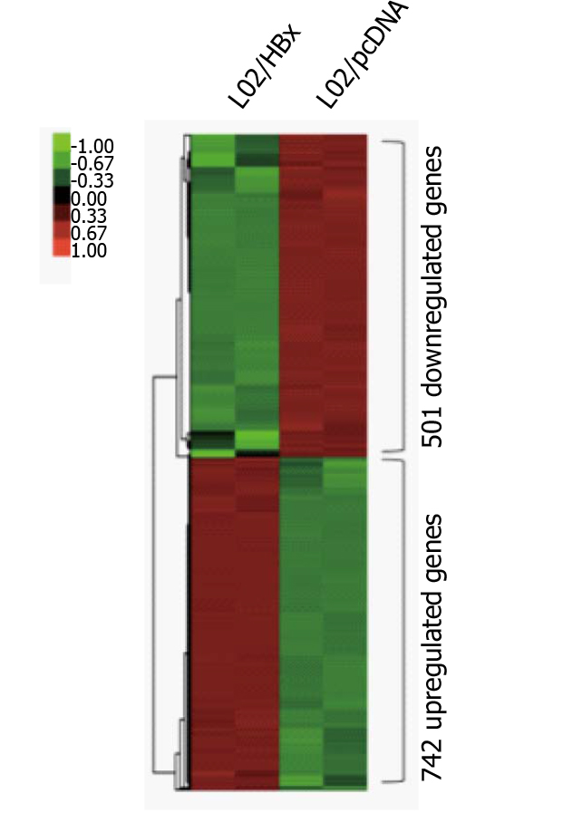 Figure1A. L02/HBx和L02/pcDNA細(xì)胞的RNA-Seq整體差異基因表達(dá)譜