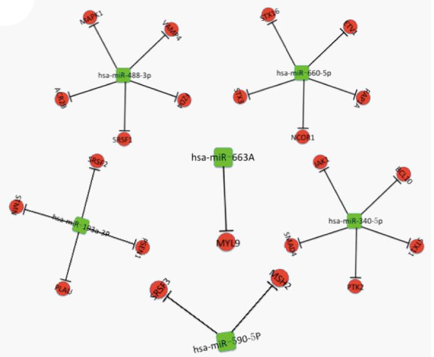 Figure4C. 核心miRNA靶向調(diào)控網(wǎng)絡(luò)圖