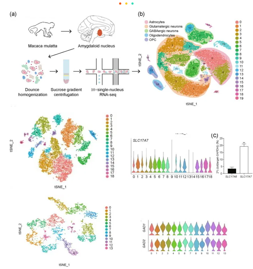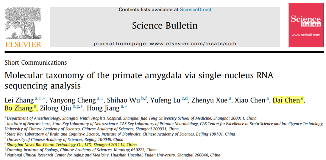 近日,上海交通大學(xué)醫(yī)學(xué)院附屬第九人民醫(yī)院麻醉科姜虹教授、張磊老師和中科院腦智卓越中心仇子龍教授研究團(tuán)隊(duì)合作利用單細(xì)胞核測(cè)序技術(shù)對(duì)獼猴和小鼠腦組織進(jìn)行對(duì)比研究,首次描繪了幼年獼猴杏仁核的神經(jīng)細(xì)胞類(lèi)群圖譜,同時(shí)對(duì)比了幼年獼猴和幼年小鼠之間的差異。該研究成果以“Molecular taxonomy of the primate amygdala via single-nucleus RNA sequencing analysis”為題發(fā)表于《Science Bulletin》(IF 9.5)。