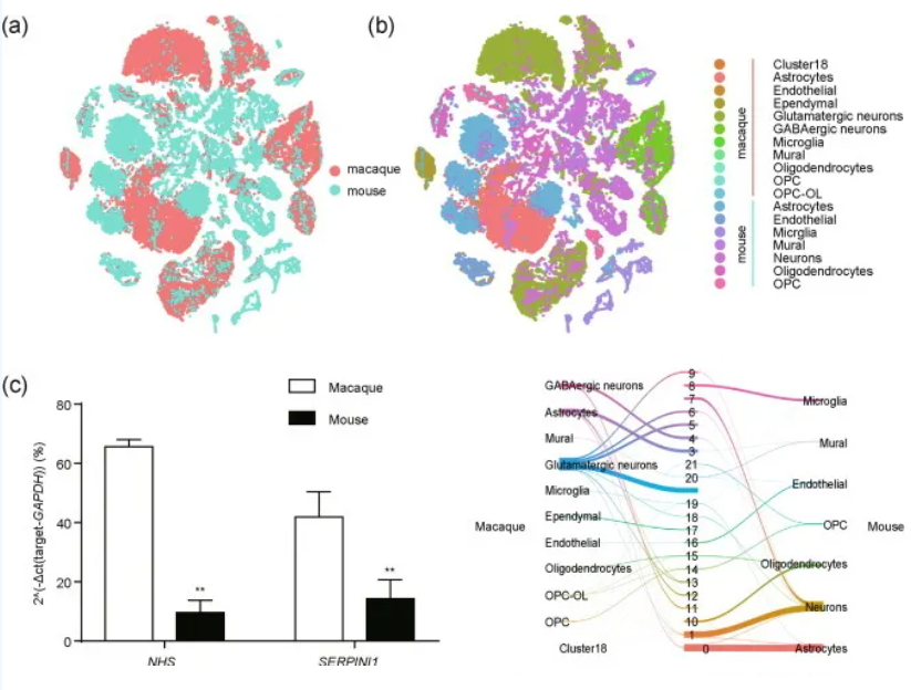 臨床研究發(fā)現(xiàn),多次全麻手術(shù)可能會(huì)引起嬰幼兒患者遠(yuǎn)期語(yǔ)言和社交能力的降低,但科研實(shí)驗(yàn)中卻發(fā)現(xiàn),非人靈長(zhǎng)類(lèi)和嚙齒類(lèi)動(dòng)物模型之間尚存在一定的差異,多次麻醉的幼鼠很難觀察到社交能力的損害。而非人靈長(zhǎng)類(lèi)與嬰幼兒表征更為相近。因此,解析非人靈長(zhǎng)類(lèi)和嚙齒類(lèi)動(dòng)物之間的細(xì)胞差異,對(duì)于研究了人類(lèi)神經(jīng)系統(tǒng)疾病包括全麻藥物的神經(jīng)發(fā)育毒性機(jī)制尤為重要。
