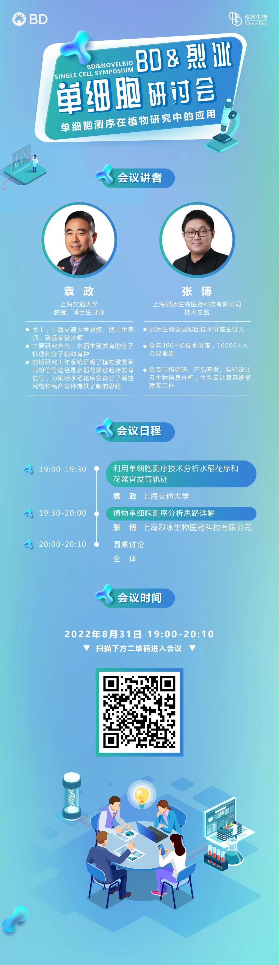 2022 年 8 月 31 日 19:00~20:10,烈冰生物和BD(中國(guó))將繼續(xù)聯(lián)合舉辦第二期單細(xì)胞直播講座——植物研究專題,上海交通大學(xué)袁政教授、烈冰生物技術(shù)總監(jiān)張博先生將進(jìn)行細(xì)致的解答,精彩不容錯(cuò)過!
