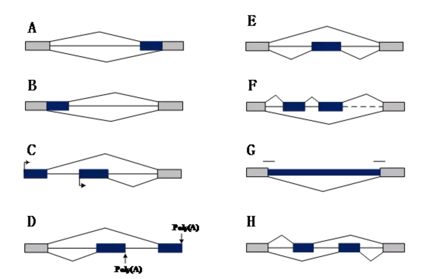 在高等真核生物中,基因大都以內(nèi)含子-外顯子交替的形式存在,當(dāng)其被轉(zhuǎn)錄成pre-mRNA后,通過(guò)外顯子的不同組合方式,可以產(chǎn)生一系列不同的轉(zhuǎn)錄本,最終使得生物體內(nèi)的轉(zhuǎn)錄組和蛋白質(zhì)組呈現(xiàn)多樣性。在這個(gè)過(guò)程中,可變剪接起著關(guān)鍵的作用。在人類中,絕大多數(shù)具有蛋白編碼能力的基因都能受到可變剪接的調(diào)控,最終產(chǎn)生多種不同功能的蛋白亞型。而異常的可變剪接也廣泛涉及到了多種疾病,例如癌癥等。因此,探索可變剪接事件對(duì)于進(jìn)一步理解生物體內(nèi)不同轉(zhuǎn)錄本的功能是至關(guān)重要的。