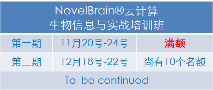 想要參加5天培訓(xùn)班但還沒有報名的老師不要著急, NovelBrain®云計算生物信息與實戰(zhàn)培訓(xùn)班第二期的開課時間已經(jīng)確定?所剩名額已經(jīng)不多,老師們一定要抓緊哦!