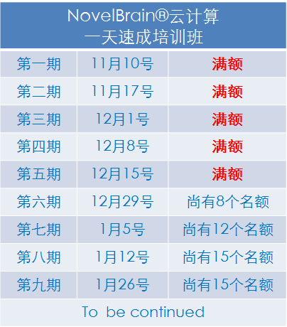 NovelBrain®云計算一天速成培訓(xùn)班第三期(12月1號),第四期(12月8號),第五期(12月15號)均已滿額!均已滿額!均已滿額!