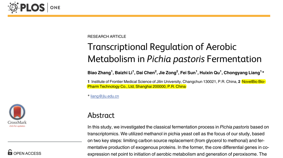 為了研究畢氏酵母發(fā)酵過程中基因的變化,吉林大學(xué)梁重陽團隊以畢氏酵母對甲醇適應(yīng)性發(fā)酵rHSA(人重組白蛋白)過程為模型,研究了畢氏酵母發(fā)酵過程中轉(zhuǎn)錄組學(xué)與關(guān)鍵發(fā)酵階段的關(guān)系。該研究最近以“Transcriptional Regulation of AerobicMetabolism in Pichia pastoris Fermentation”為題發(fā)表于著名學(xué)術(shù)期刊PLOS ONE,烈冰生信團隊在測序和生信分析方面給予了有力的支持。