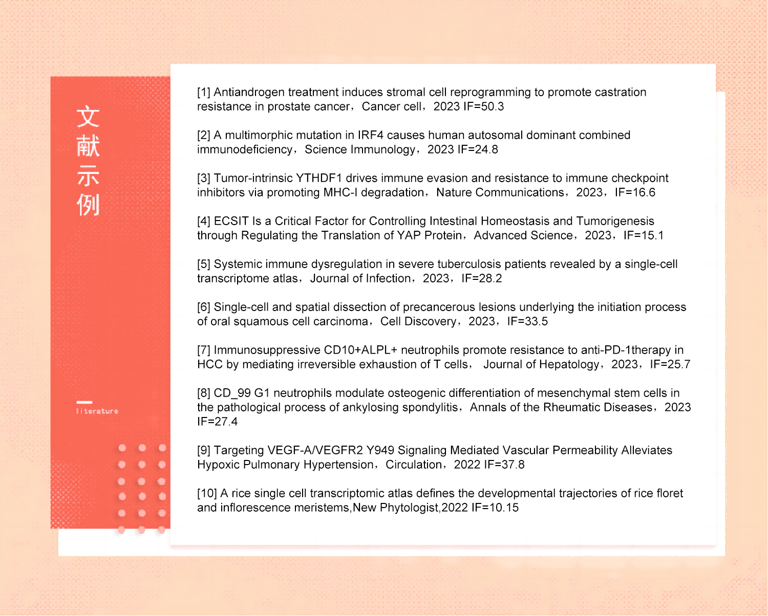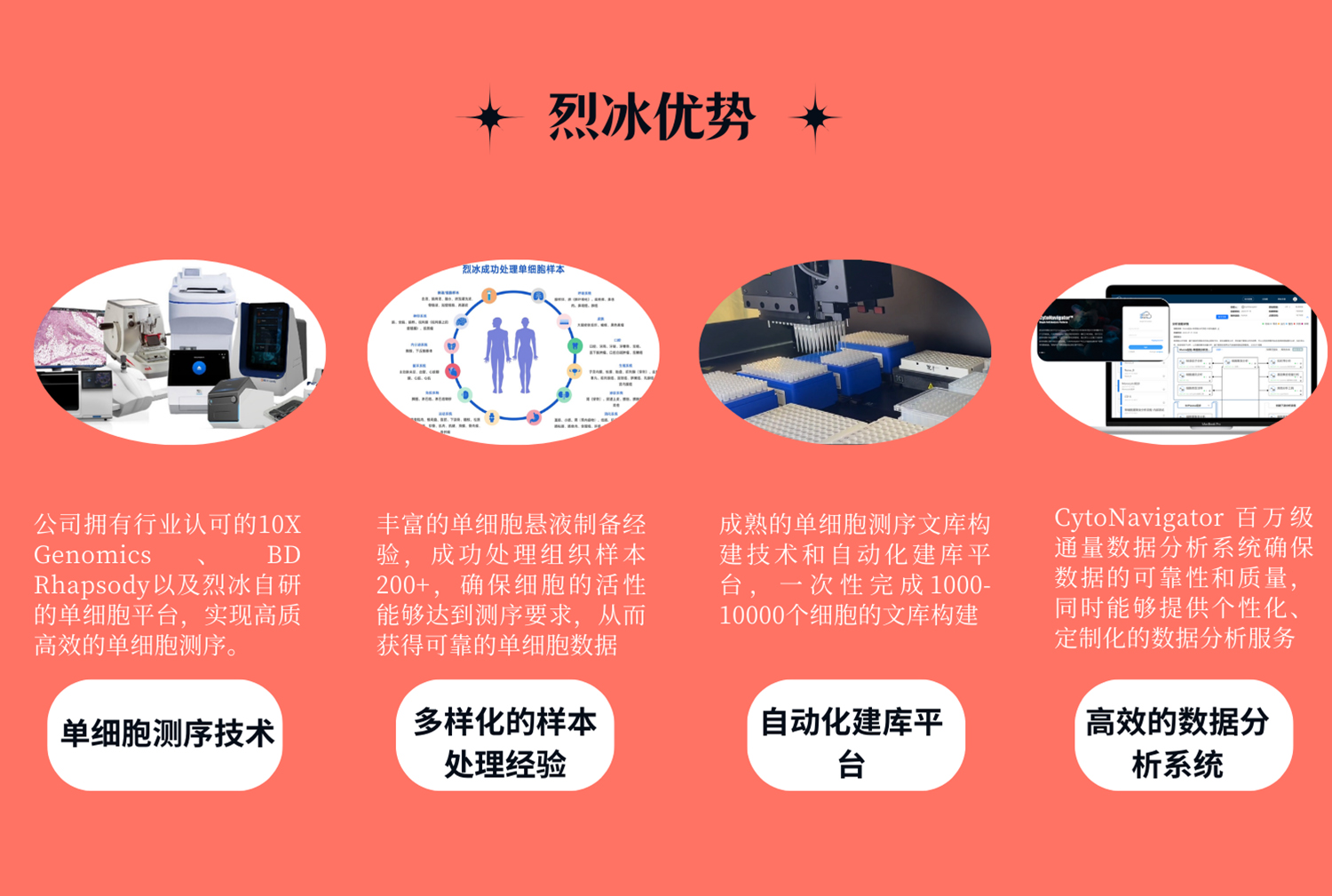 烈冰單細(xì)胞測(cè)序?yàn)榱藴?zhǔn)確快速地進(jìn)行單細(xì)胞測(cè)序研究,基于前沿的研究文獻(xiàn)進(jìn)行多重優(yōu)化,真正做到準(zhǔn)確可靠全面的單細(xì)胞測(cè)序解析