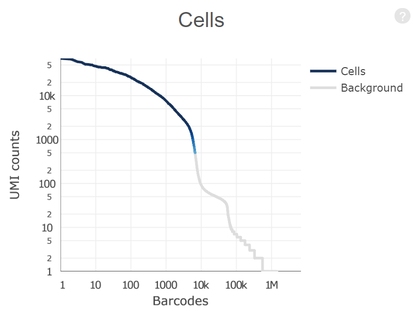采用Fastp軟件對(duì)下機(jī)原始數(shù)據(jù)進(jìn)行質(zhì)控,對(duì)質(zhì)控后測(cè)序數(shù)據(jù)中的cell barcode信息及其對(duì)應(yīng)的counts數(shù)進(jìn)行統(tǒng)計(jì),判斷測(cè)序樣本中實(shí)際檢測(cè)到的細(xì)胞數(shù)量,獲得樣本的測(cè)序細(xì)胞數(shù),并根據(jù)最終確認(rèn)的cell barcode信息提取對(duì)應(yīng)的reads。