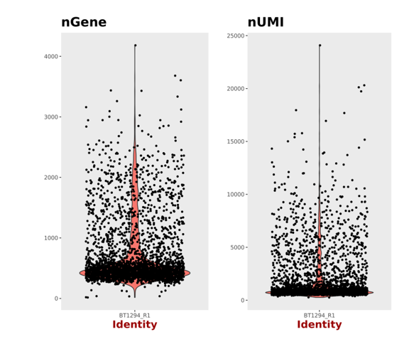 注:左圖為細(xì)胞中總共檢測(cè)到的基因數(shù)量,右圖為去除重復(fù)UMI后統(tǒng)計(jì)的基因數(shù)量