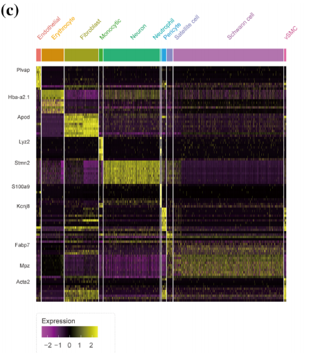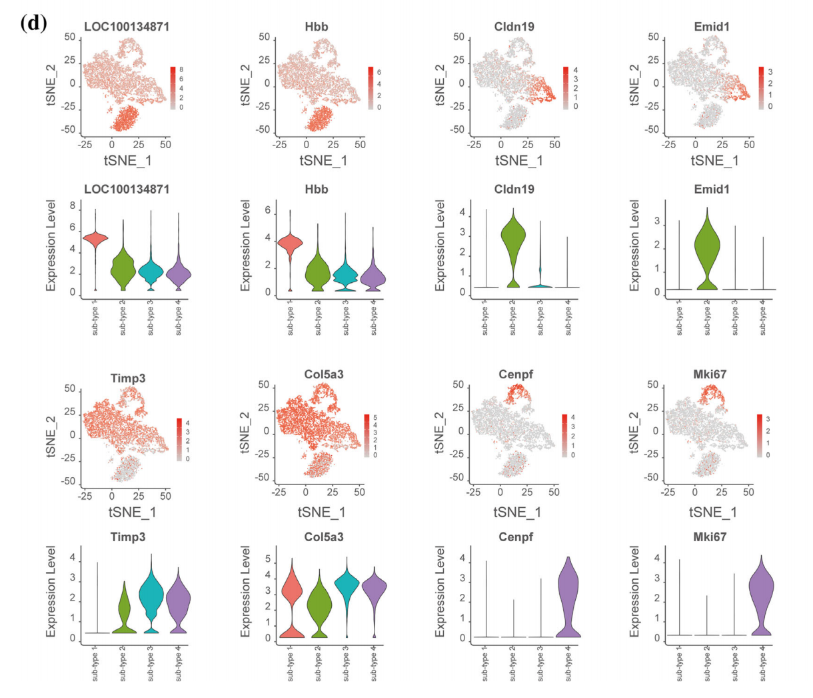 鑒定不同細(xì)胞亞群中的Marker基因,并對(duì)Marker基因的表達(dá)分布進(jìn)行可視化展示。